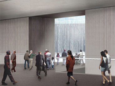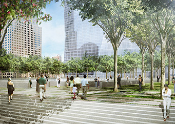 | The original impractical LMDC memorials: Interior view of waterfalls (little historical meaning) Click for the official eight finalist memorial designs. |